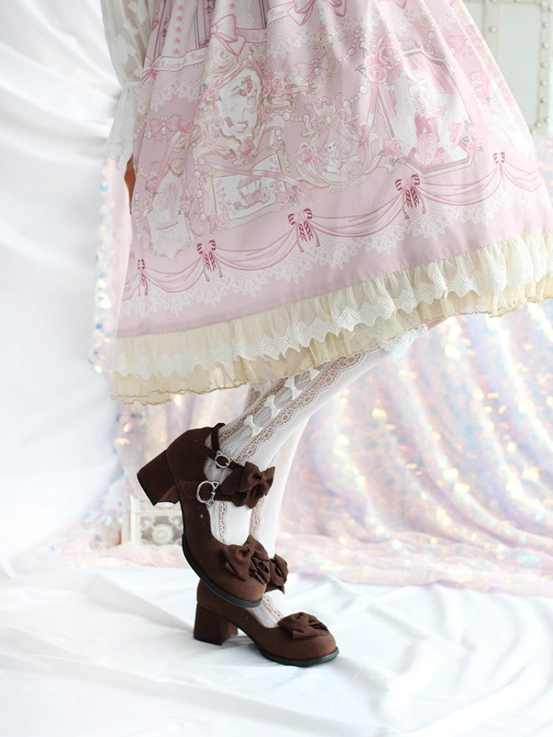 Adorable mid-heel leather shoes featuring big bow accents, double straps, and a gentle height-boosting design.