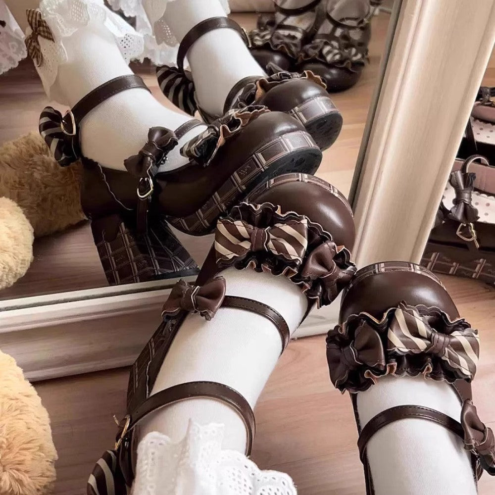 Elegant Lolita-style Mary Jane shoes designed with a round toe and charming bow details. The supportive high heel adds subtle height while keeping a balanced, wearable feel for daily outfits or special looks.
